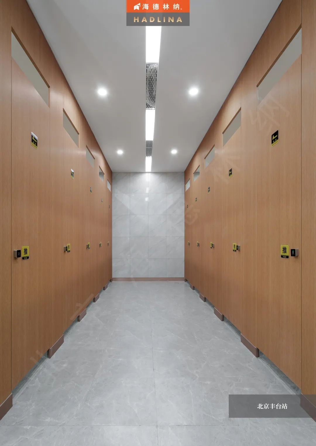 海德林納?為北京豐臺站設計了衛生間隔斷系統方案。該項目共有600余間廁所隔斷,采用海德林納經典款式HD-109和精品五金配件,為北京豐臺站打造了堅固舒適的衛生空間。
