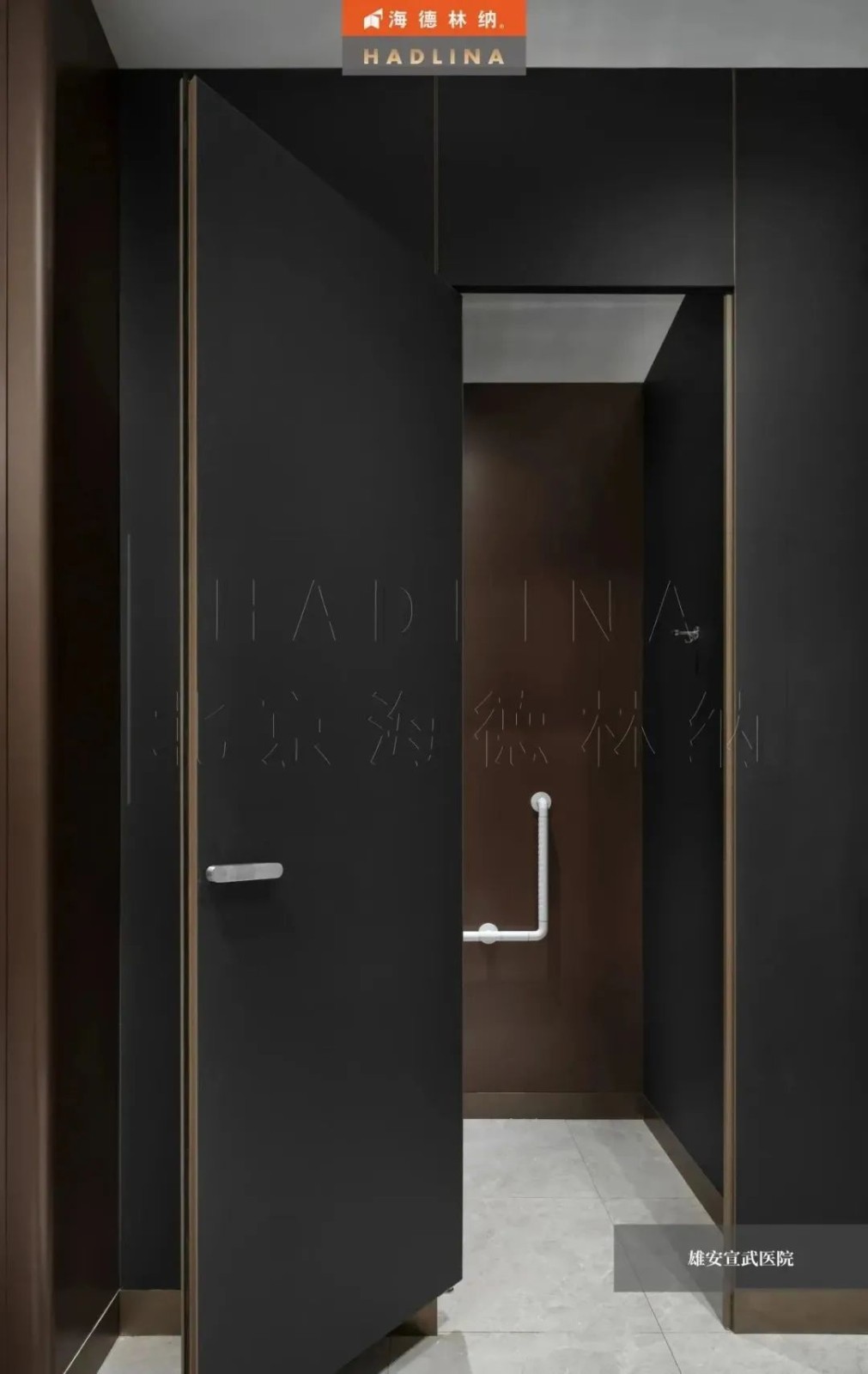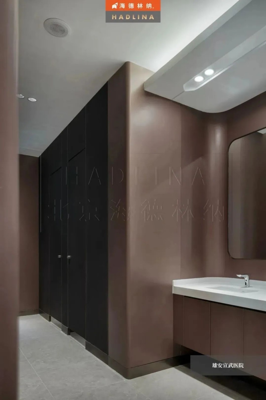 在雄安宣武醫院項目中,海德林納?使用HD-16隔斷產品,為醫院衛生間帶來了一種時尚和奢華的現代感。這款隔斷產品以其獨特的金棕革顏色,以及特殊工藝中的皮革紋理表面,內襯的鋁蜂窩,為醫院衛生間注入了一種令人印象深刻的感覺。