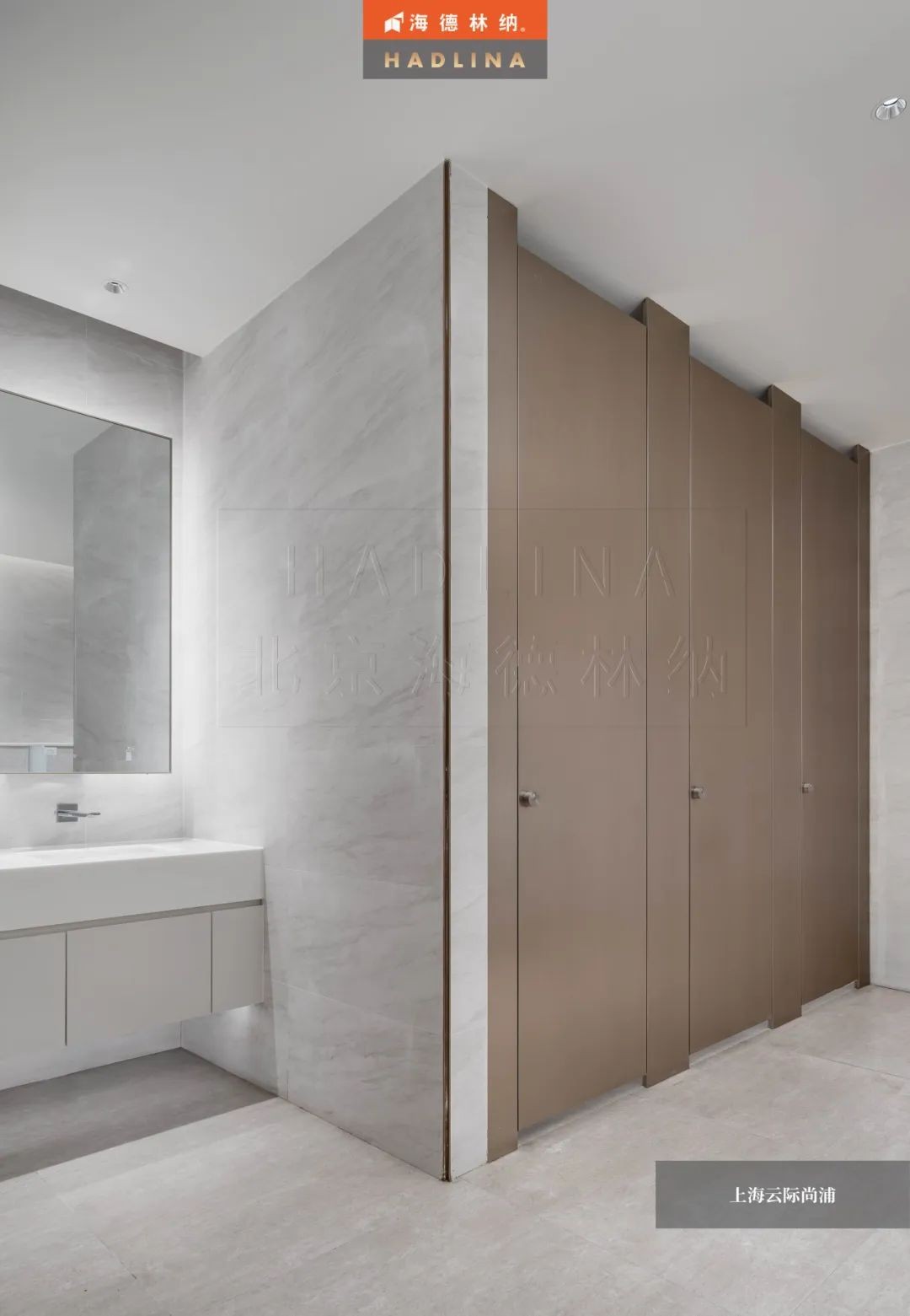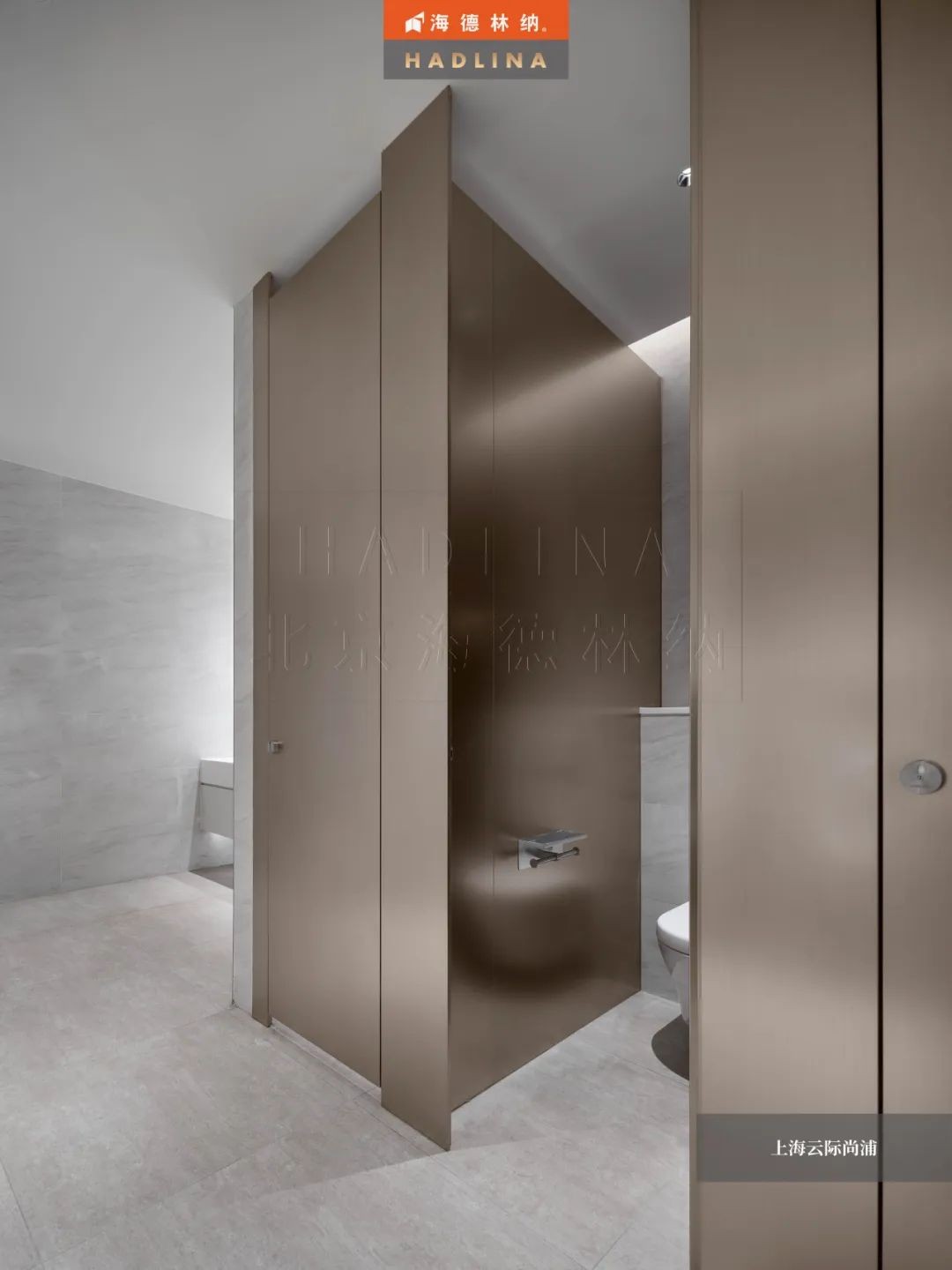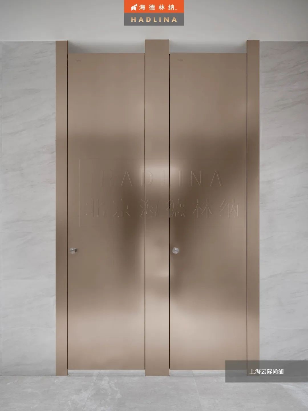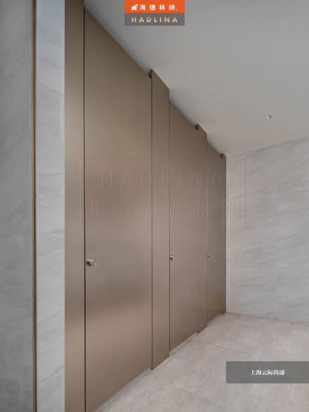 上海云際尚浦采用海德林納?HD109款式,設計簡約大方,線條流暢,彰顯現代感和品位。錫銅拉絲的顏色更是為其增添了一份高級質感,使整體衛生隔斷與周圍環境完美融合,提升了空間的美感與品質。