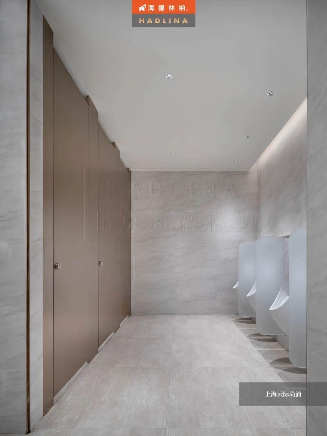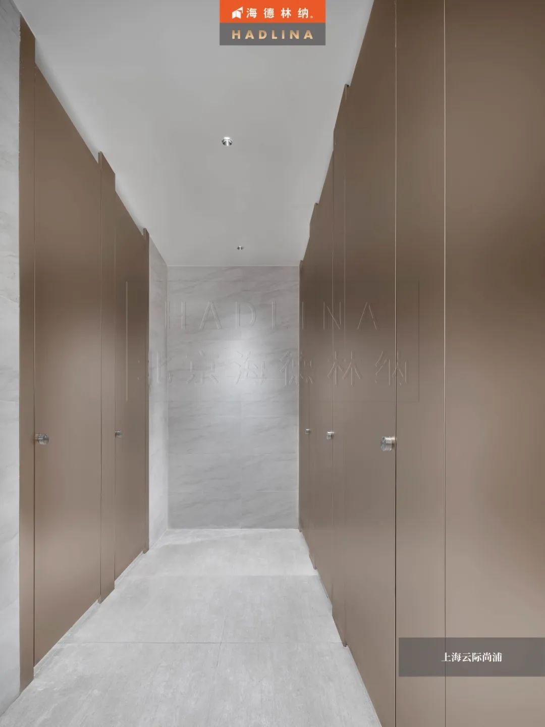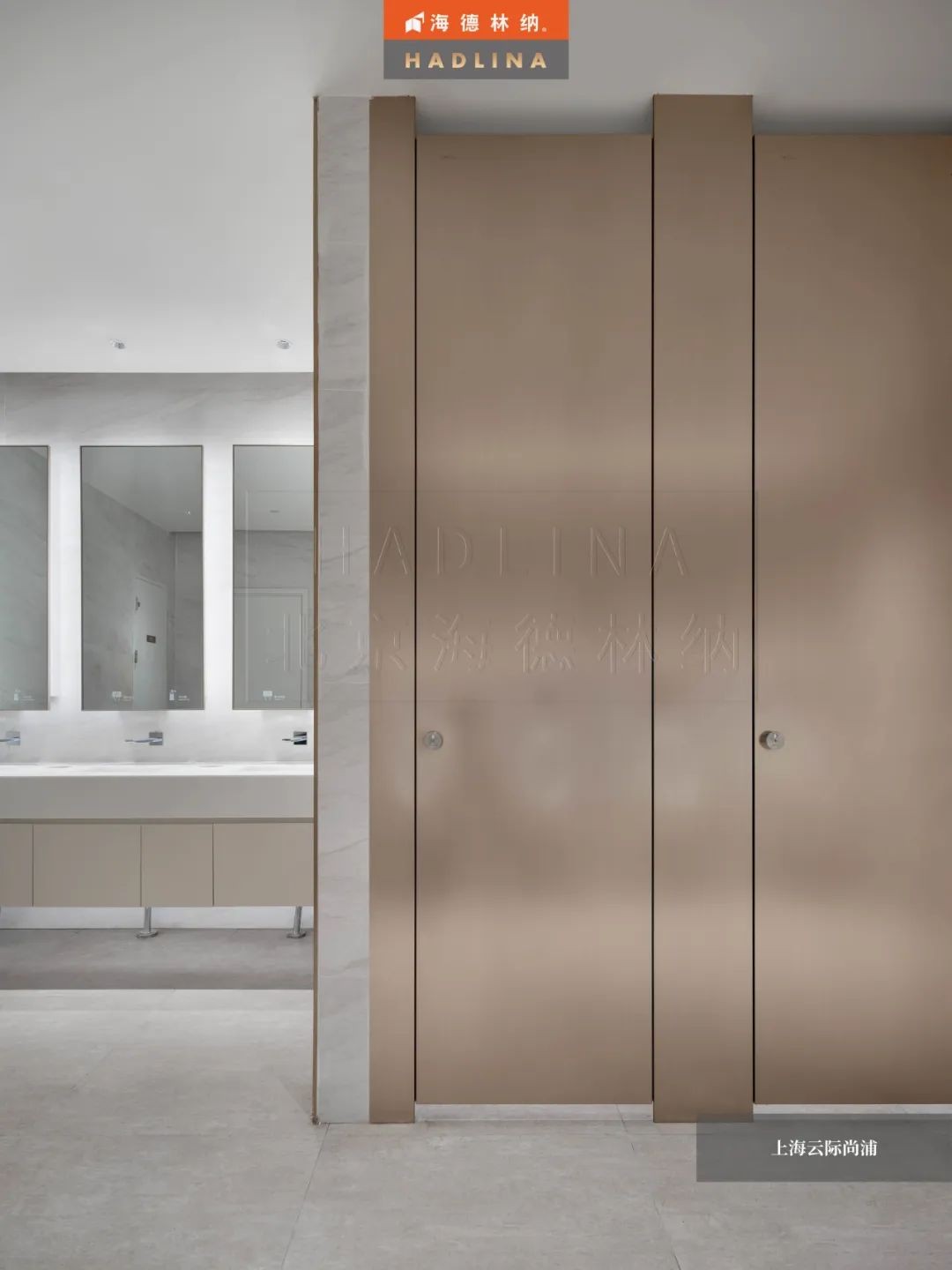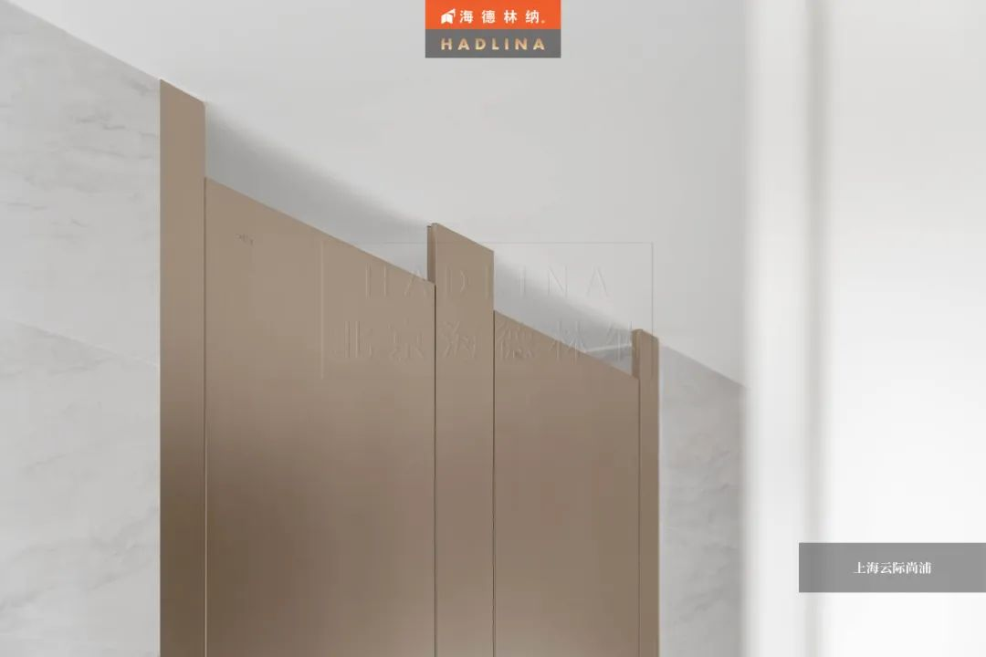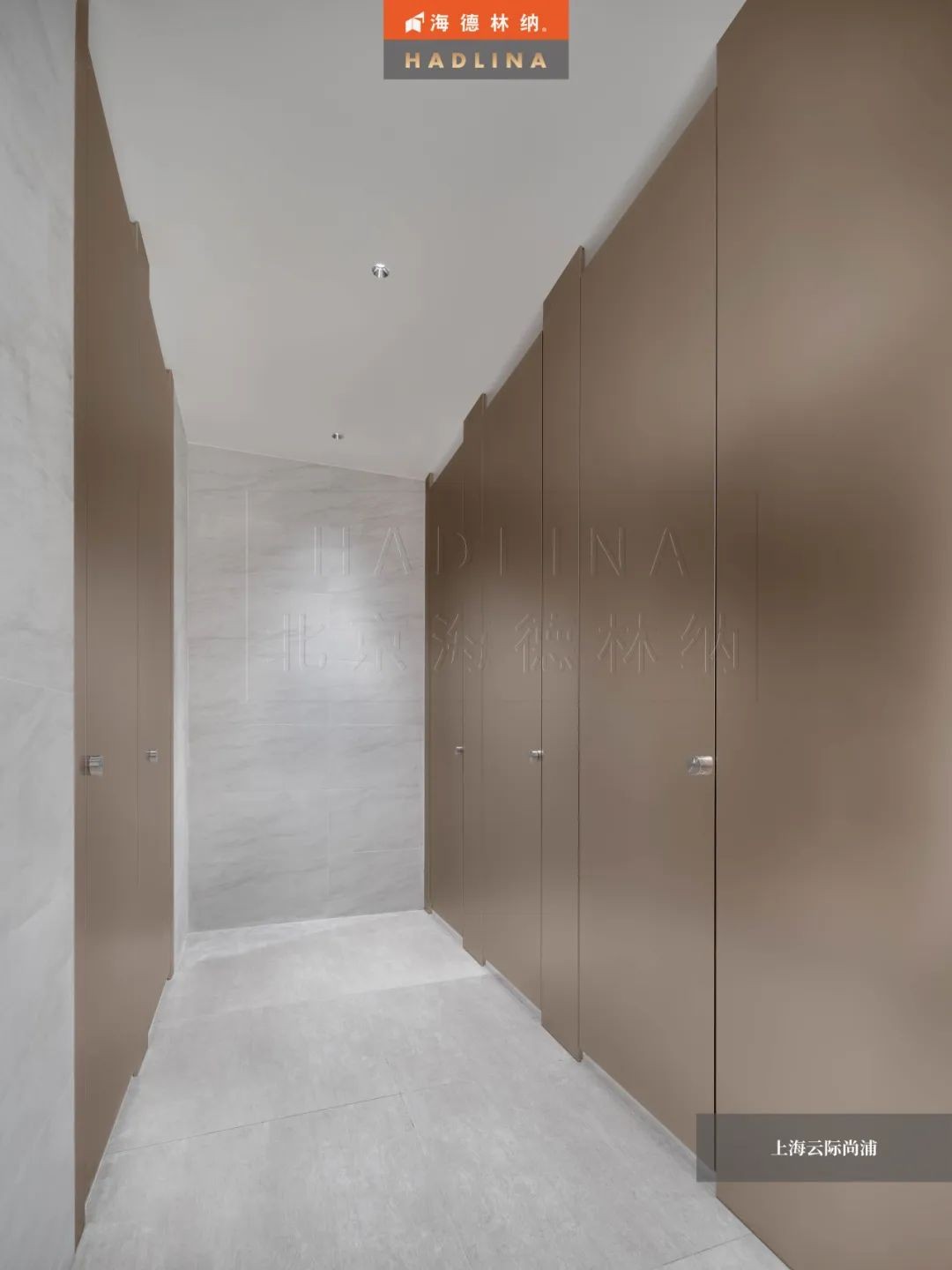 上海云際尚浦采用海德林納?HD109款式,設計簡約大方,線條流暢,彰顯現代感和品位。錫銅拉絲的顏色更是為其增添了一份高級質感,使整體衛生隔斷與周圍環境完美融合,提升了空間的美感與品質。