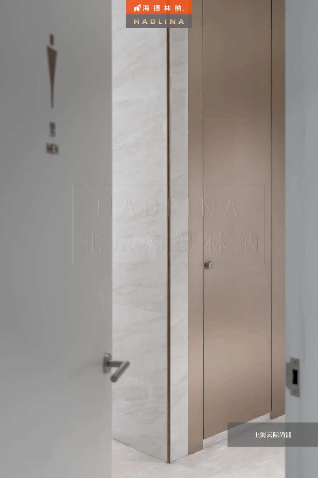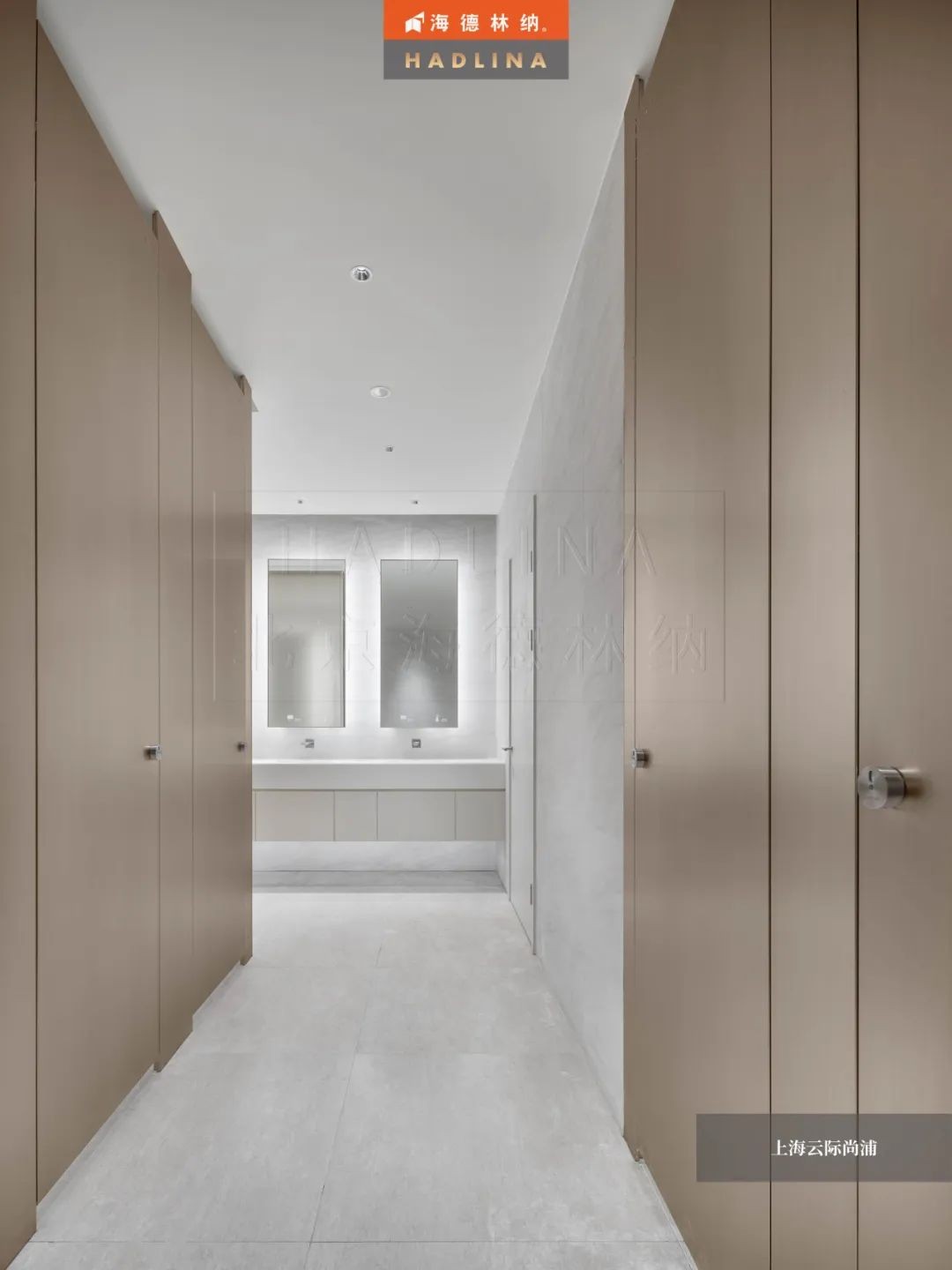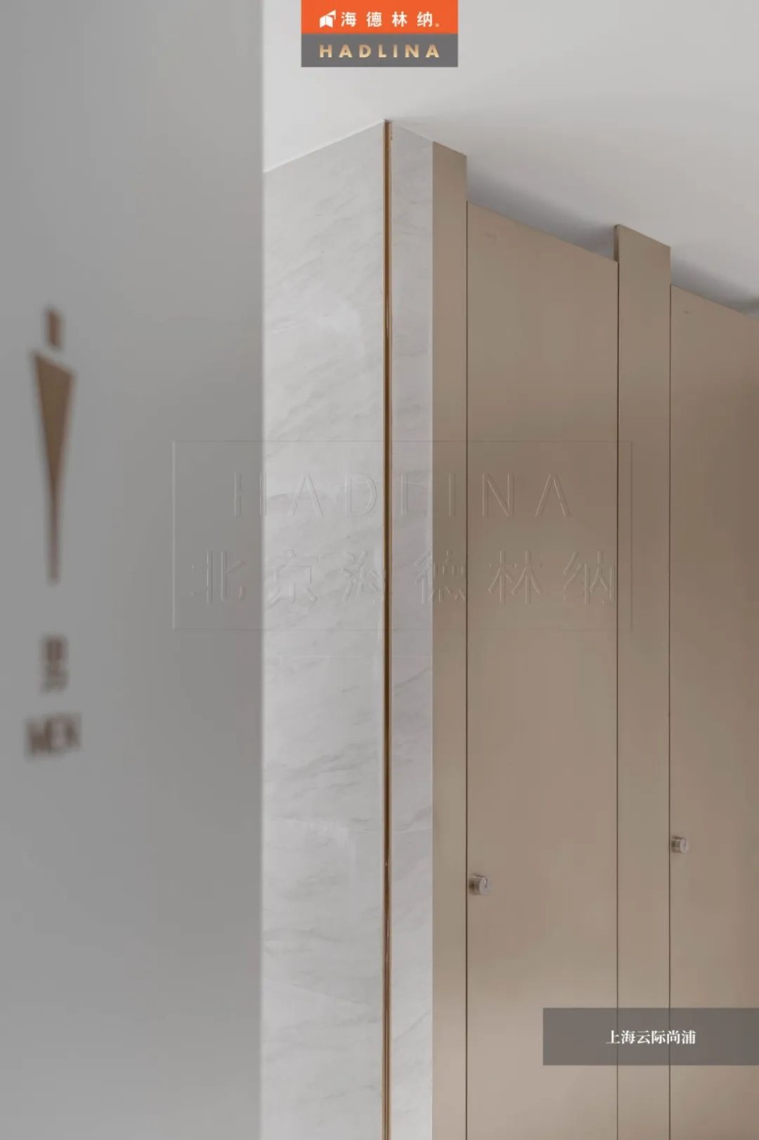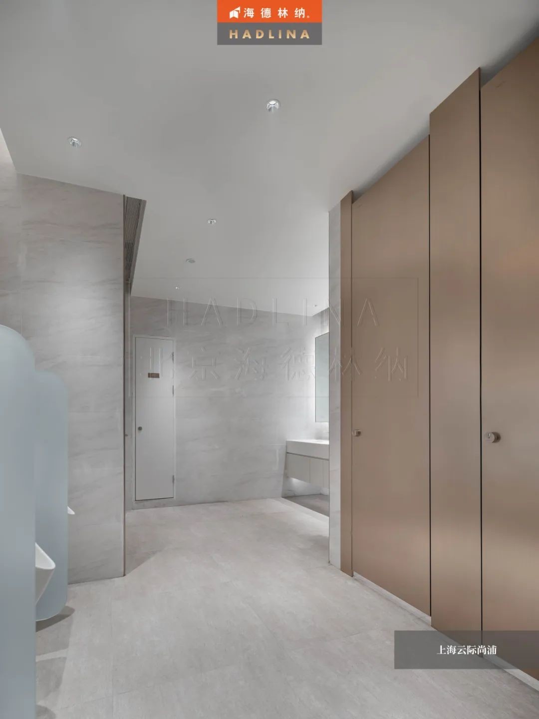 上海云際尚浦采用海德林納?HD109款式,設計簡約大方,線條流暢,彰顯現代感和品位。錫銅拉絲的顏色更是為其增添了一份高級質感,使整體衛生隔斷與周圍環境完美融合,提升了空間的美感與品質。